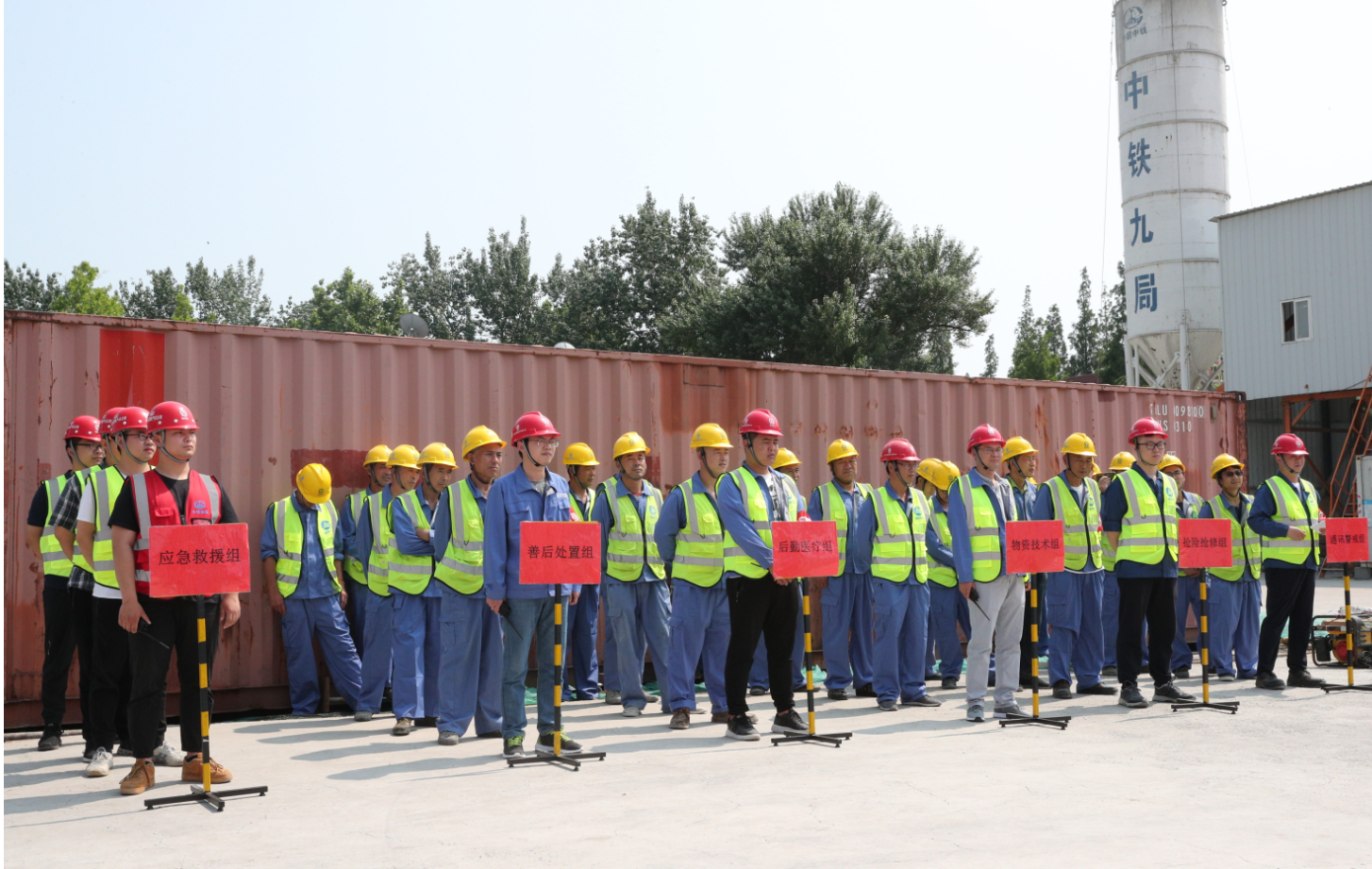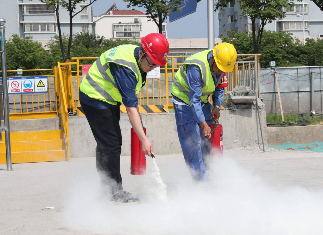 下午2點整,姜曉紅經理講解了應急演練的積極意義及具體方案,公司地鐵項目部安全總監王正強講解滅火器材使用方法和消防疏散注意事項及安全帶的正確使用方法,并現場隨機邀請了兩名工人進行滅火器的使用演練。2點20分,綜合應急救援演練活動總指揮劉洋同志宣布演練正式開始,演練背景:1、由于夏季多雨,車站發生雨水倒灌;2、施工現場電焊作業的焊渣引燃可燃材料導致火災。隨即展開防汛、消防救援活動,經過水泵排水、砂袋擋水、自救互救、滅后器滅后、消防水滅火、人員疏散逃生、火勢得到控制,險情被成功化解。演練主要展現現場應急響應、防汛、滅火、人員疏散逃生、傷員急救轉移五個環節,分應急響應、信息上報、防汛、滅火器滅火、消防水滅火、傷員救治與轉移、人員疏散七個場景演練,鍛煉搶險救援隊伍,提高先期處置能力。